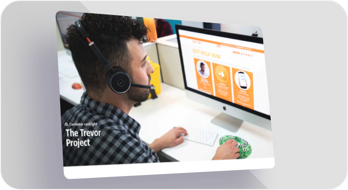 Customer spotlight The Trevor Project Twilio Impact Report Page 10 Page 12Video Player is loading.Play VideoPauseSkip BackwardSkip ForwardUnmuteCurrent Time 0:02/Duration 0:30Loaded: 70.94%0:02Stream Type LIVESeek to live, currently behind liveLIVERemaining Time -0:28 1xPlayback RateChaptersChaptersDescriptionsdescriptions off, selectedCaptionscaptions settings, opens captions settings dialogcaptions off, selectedAudio TrackPicture-in-PictureFullscreenThis is a modal window.Beginning of dialog window. Escape will cancel and close the window.TextColorWhiteBlackRedGreenBlueYellowMagentaCyanOpacityOpaqueSemi-TransparentText BackgroundColorBlackWhiteRedGreenBlueYellowMagentaCyanOpacityOpaqueSemi-TransparentTransparentCaption Area BackgroundColorBlackWhiteRedGreenBlueYellowMagentaCyanOpacityTransparentSemi-TransparentOpaqueFont Size50%75%100%125%150%175%200%300%400%Text Edge StyleNoneRaisedDepressedUniformDrop shadowFont FamilyProportional Sans-SerifMonospace Sans-SerifProportional SerifMonospace SerifCasualScriptSmall CapsResetDoneClose Modal DialogEnd of dialog window.