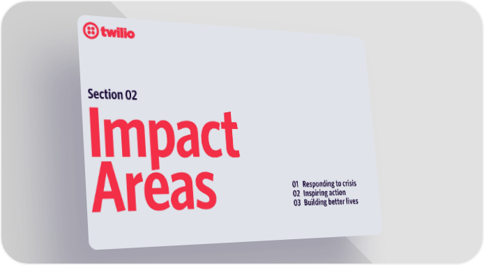 Twilio Impact Report Page 5 Page 7Section 02 Impact 01 Responding to crisis Areas 02 Inspiring action 03 Building better lives